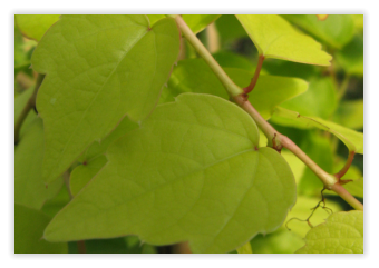 … ist ein Wilder Wein mit kleinen dreizähligen Blättern, welche in einem gelb-grünem Farbton erscheinen. Er wächst gleichermaßen breit wie